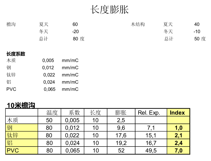 在所有檐溝材料中鋼的熱位移最小,它會(huì)保持原來的形狀而不易造